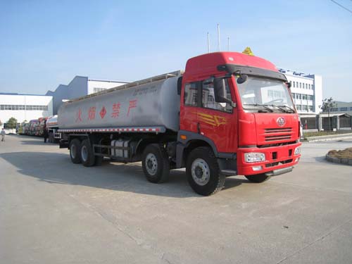 | 解放前四后八加油車罐體有效容積:25.5立方米.罐體外形尺寸(長×寬×高)(mm)9100×2400×1540。運輸介質(zhì):汽油,密度:700千克/立方米。隨底盤選裝平頂駕駛室。 |
