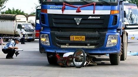前天下午6時(shí)許,在四境路與海扽路交叉口,一輛大型平板拖車與一輛摩托車相撞,事故致使騎摩托車的兩人當(dāng)場死亡。